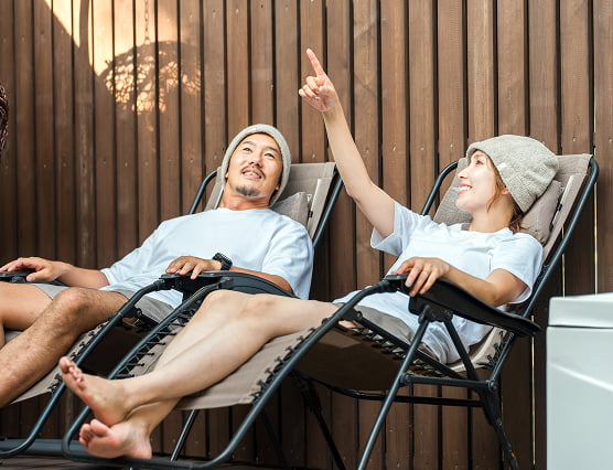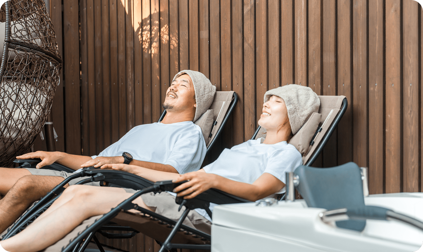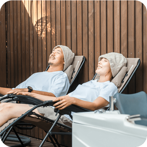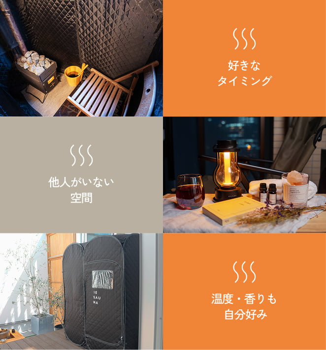 夜サウナ(就寝前) 順番待ちや移動のストレスなく、自宅で好きなタイミングでサウナを楽しめます。心身のリフレッシュにつながるだけでなく、リラックス状態をつくることで入眠しやすくなる人も多いようです。穏やかな気分で眠りにつけるため、翌朝すっきり目覚めやすいと感じる方もいます。